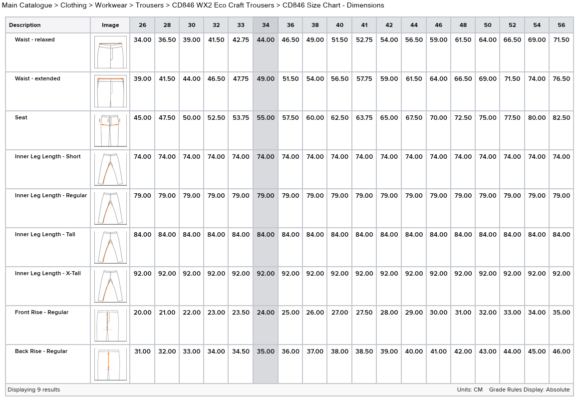 Größentabelle